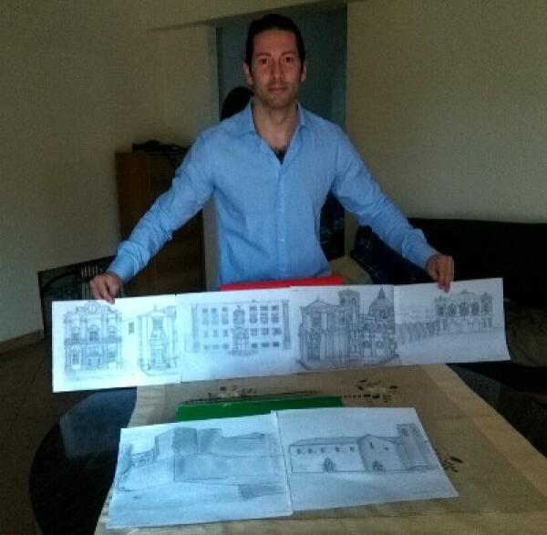 Disegni a matita su Piazza Armerina dell'operatore turistico Angelo Ciurca