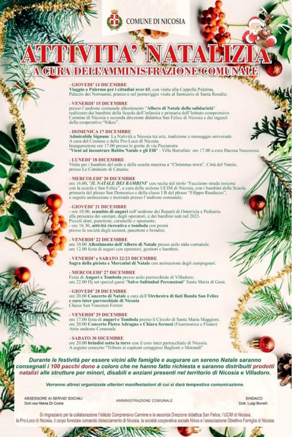 Nicosia. “Attività Natalizia”: habemus programma!