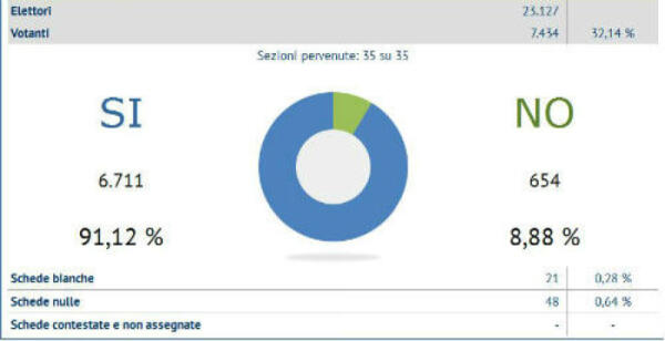 Enna. Referendum 17 aprile 2016: SI 31.223 89,55% - NO 3.645 10,45% Affluenza: 25,66%; Enna 32,14%