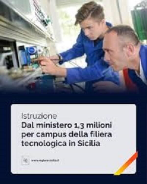 Istruzione, dal ministero 1,3 milioni per campus della filiera tecnologica in Sicilia